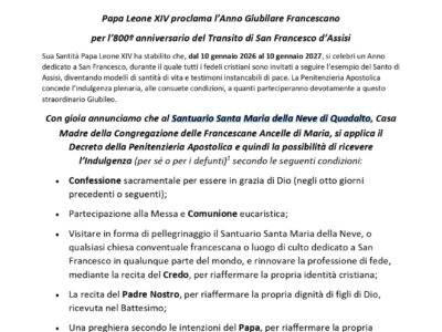 ANNO GIUBILARE FRANCESCANO – INDULGENZE Francescane Ancelle di Maria2026-03-22T15:12:38+00:00 Mar 15By Francescane Ancelle di Maria Read more...
